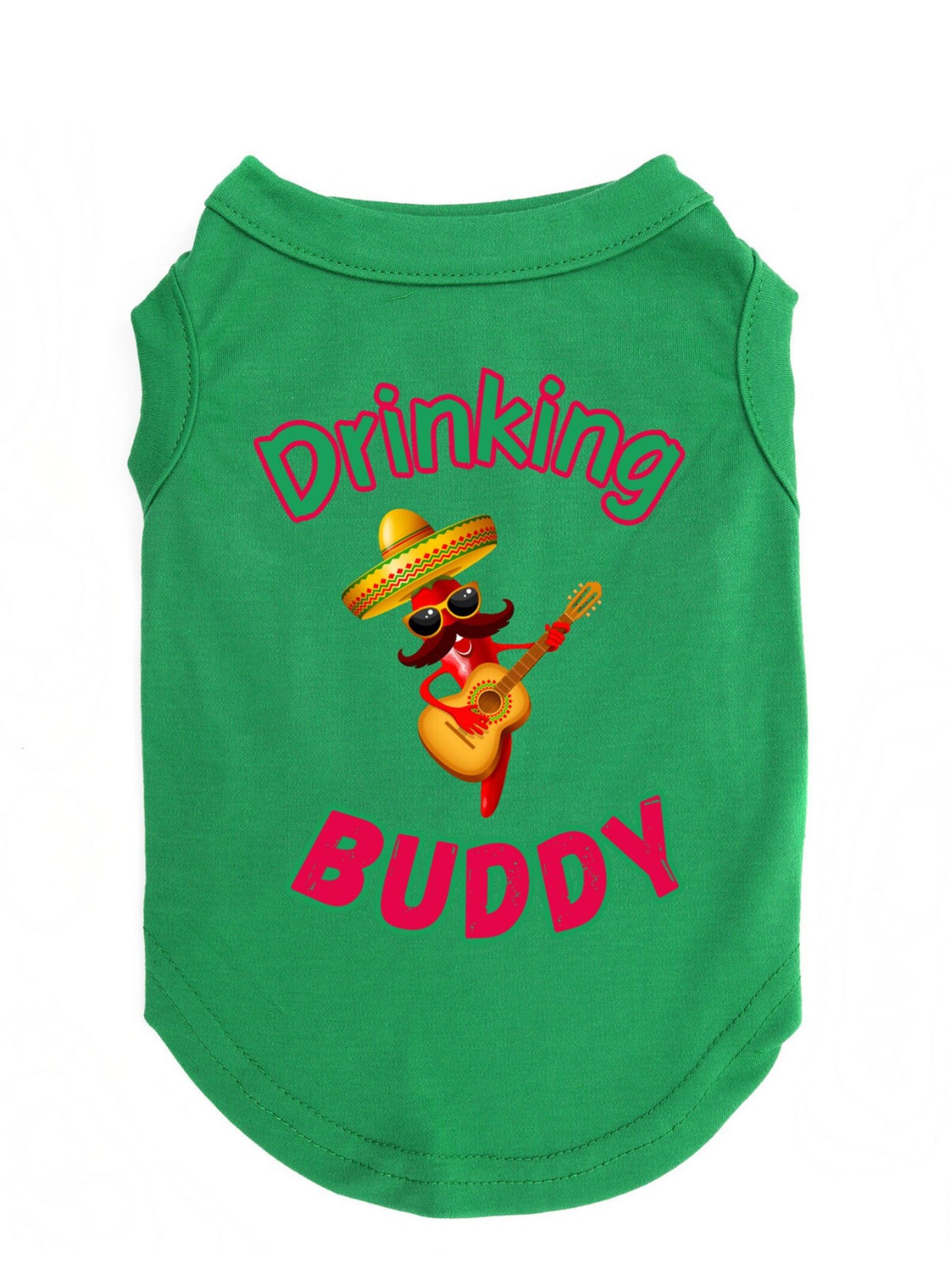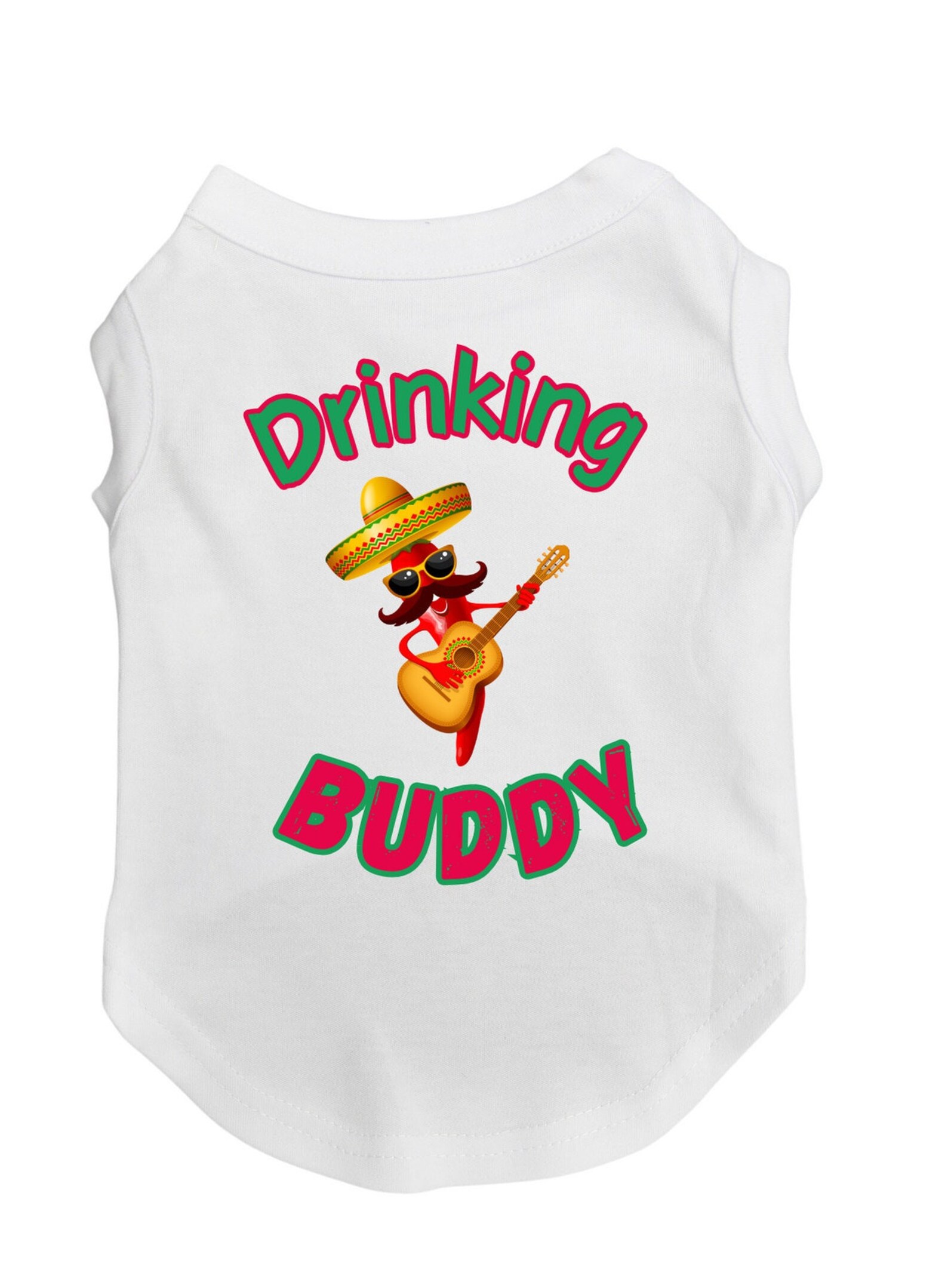 Introducing our adorable Cinco de Mayo dog shirt, the paw-fect outfit for your furry friend to join you as your ultimate drinking buddy! Crafted from high-quality, breathable fabric, this shirt ensures your dog stays comfy and stylish while accompanying you to all your Cinco de Mayo celebrations. The playful design features colorful maracas, sombreros, and a cheeky “Drinking Buddy” print, making your pup stand out in every fiesta.