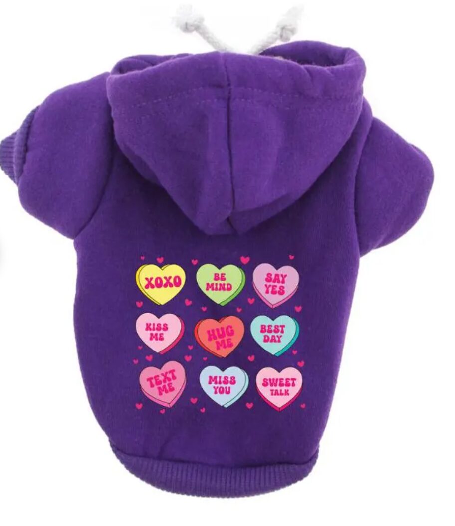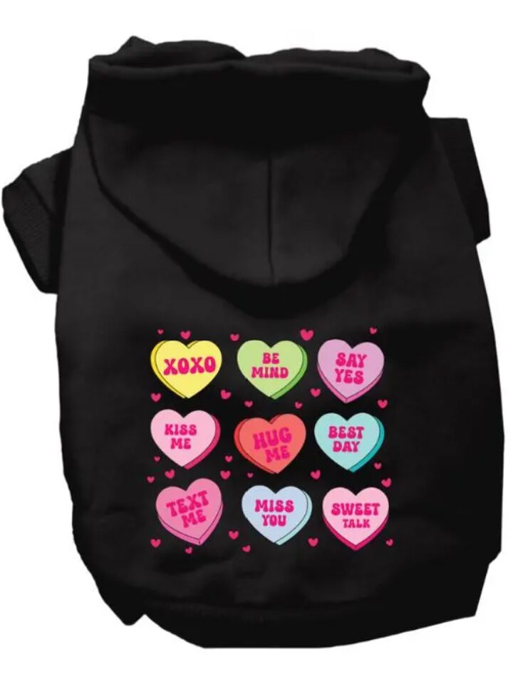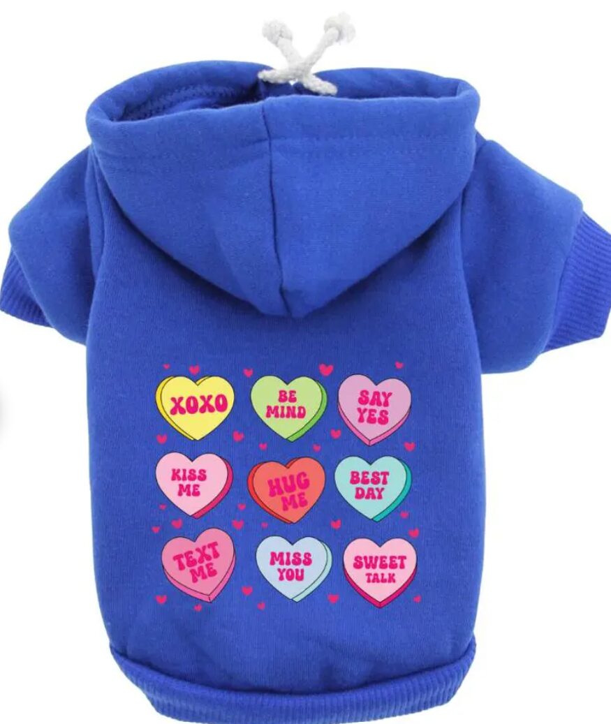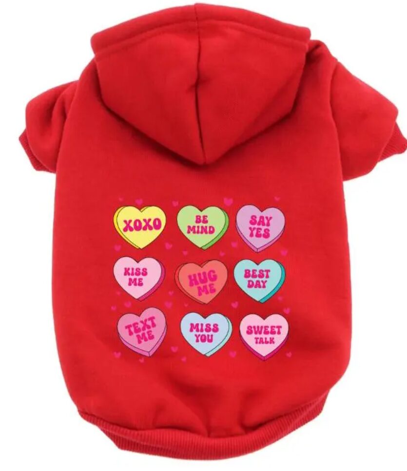 🐾 Conversation Hearts Design: Featuring a playful array of conversation hearts, this shirt exudes sweetness and charm. The hearts carry messages of love and affection, adding an endearing touch to your pet’s attire.