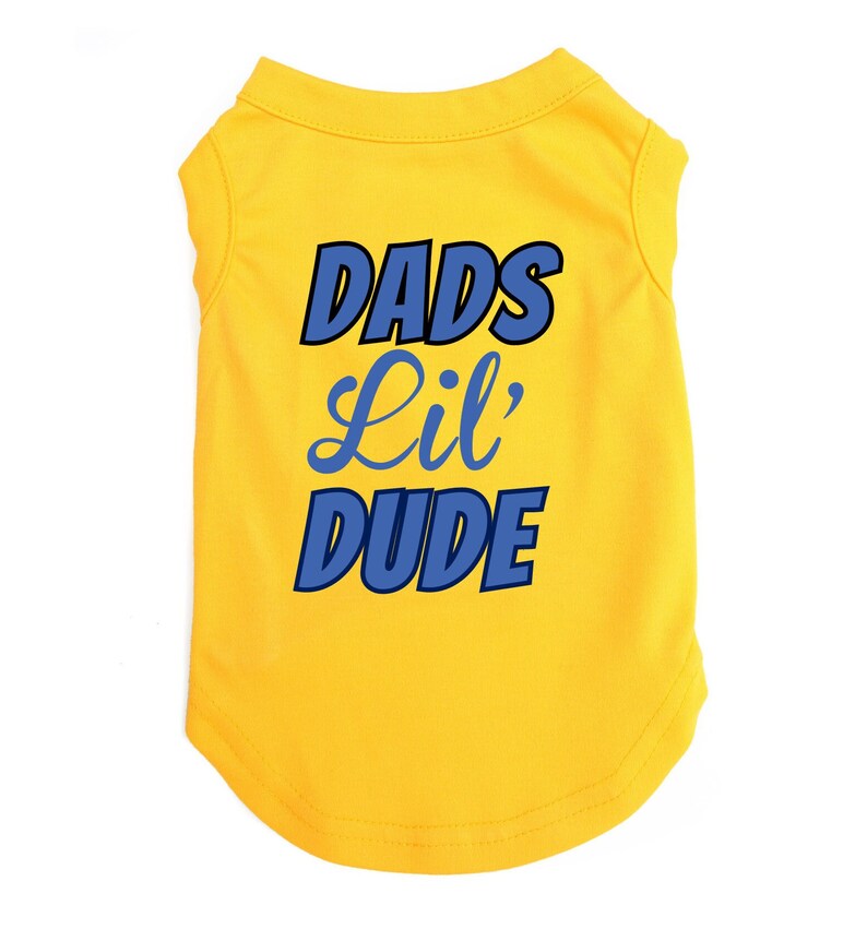 This charming ensemble is perfect for celebrating the bond between Dad and his faithful canine companion. Crafted with comfort and style in mind, our dog shirt features a cute design with the words “Dad’s Lil’ Dude” proudly displayed, while the matching bandana adds an extra dash of charm to your pup’s look.