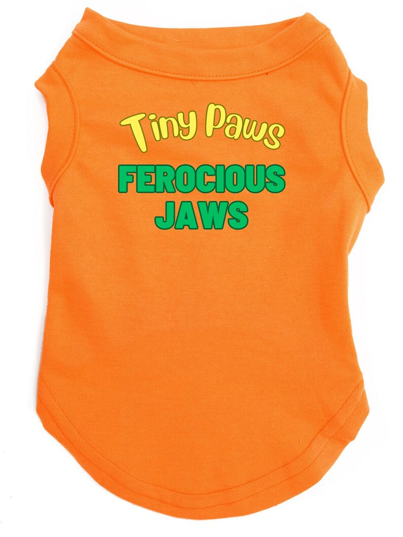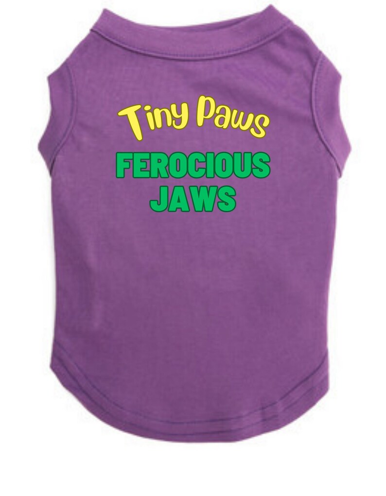 “Introducing our ‘Tiny Paws, Ferocious Jaws’ Dog Shirt – the perfect way for your pint-sized pup to make a big statement! This hilarious and adorable shirt is designed for our little furry friends who may not have the size but definitely have the spirit of a fearless protector.
