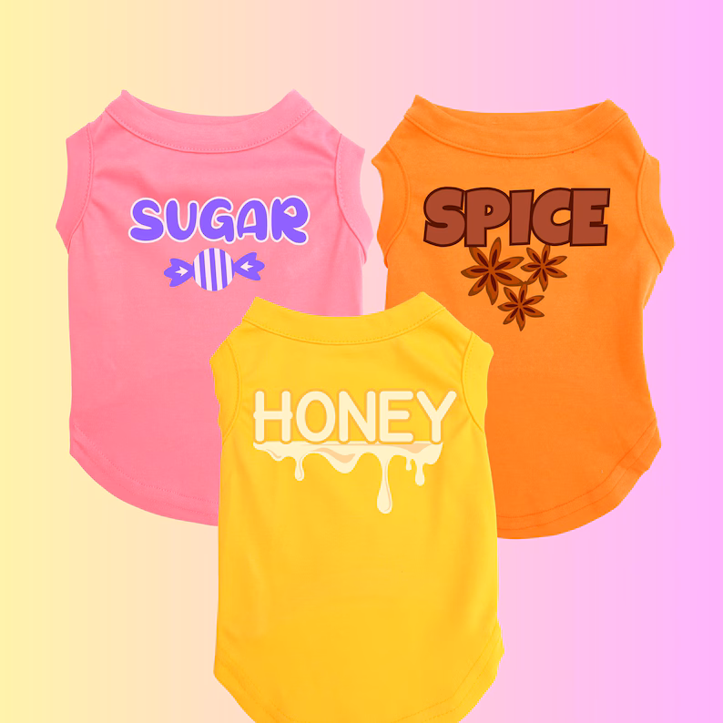 Dress your pup in style with our Sugar, Spice, and Honey Dog Shirtsβthe cutest way to match with furry friends for Halloween! π»β¨ Whether you’re dressing up a trio of pups, coordinating a family costume, or just looking for an adorable themed outfit, these comfy and stylish dog shirts are a must-have.