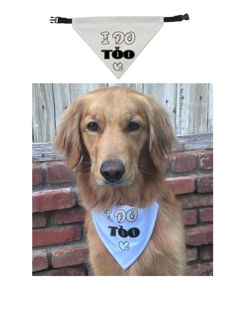 🐾 Make your furry friend a part of your special day with our charming wedding pet bandanas for dogs! 👰🐶🎩 Whether they’re the “Best Pup,” the esteemed “Pup of Honor,” or taking on the important role of “Ring Bearer” or “Flower Girl,” our bandanas will add an extra touch of cuteness to your wedding party. 💍💐 Let them declare their love too with our “I Do Too” bandana, or join the bridal party with “Bride Squad” or “Groom Squad” designs! 💒🎉 Made with soft, comfortable fabric, these bandanas ensure your furry friend is both stylish and cozy throughout the celebration. ✨🐾 Get ready to capture heartwarming moments and create unforgettable memories with our wedding over the collar pet bandanas! 📸💖
